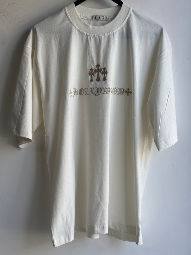 تی شرت مدل باکسی مردانه پنبه یقه گرد گلدوزی صلیب کیفیت بالا سفید