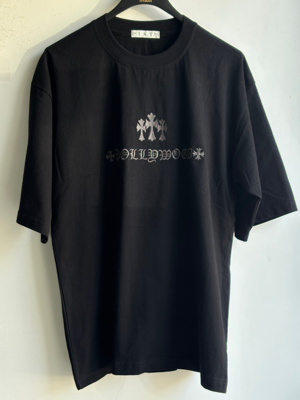 تی شرت مدل باکسی مردانه پنبه یقه گرد گلدوزی صلیب کیفیت بالا مشکی